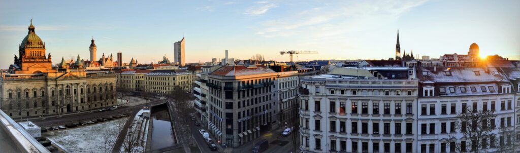 Es gibt einige großartige Aussichtspunkte in Leipzig, die es ermöglichen, die Stadt von oben zu bewundern. Wenn man das Glück einer gut gelegenen Dachgeschosswohnung, oder eben den Zugang zum eigenen Dach hat, ist das natürlich etwas Besonderes, aber für alle, die nicht zu den Glücklichen zählen, gibt es auch ein paar andere Möglichkeiten. Zum Beispiel könnt ihr vom Uniriesen ziemlich weit über Leipzig schauen, das Völkerschlachtdenkmal bietet ebenso einen tollen Ausblick und im Zentrum gibt es außerdem noch den Kirchturm der Thomaskirche, die Terrasse des Felix, das Westin, die Dachterrasse des INNSiDE by Meliá und natürlich gibt es noch ein paar andere Hotels, deren Dachterrassen einen schönen Ausblick über Teile von Leipzig versprechen.