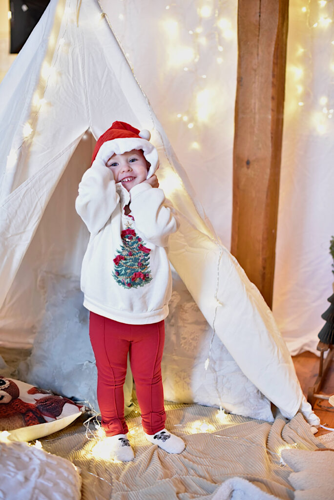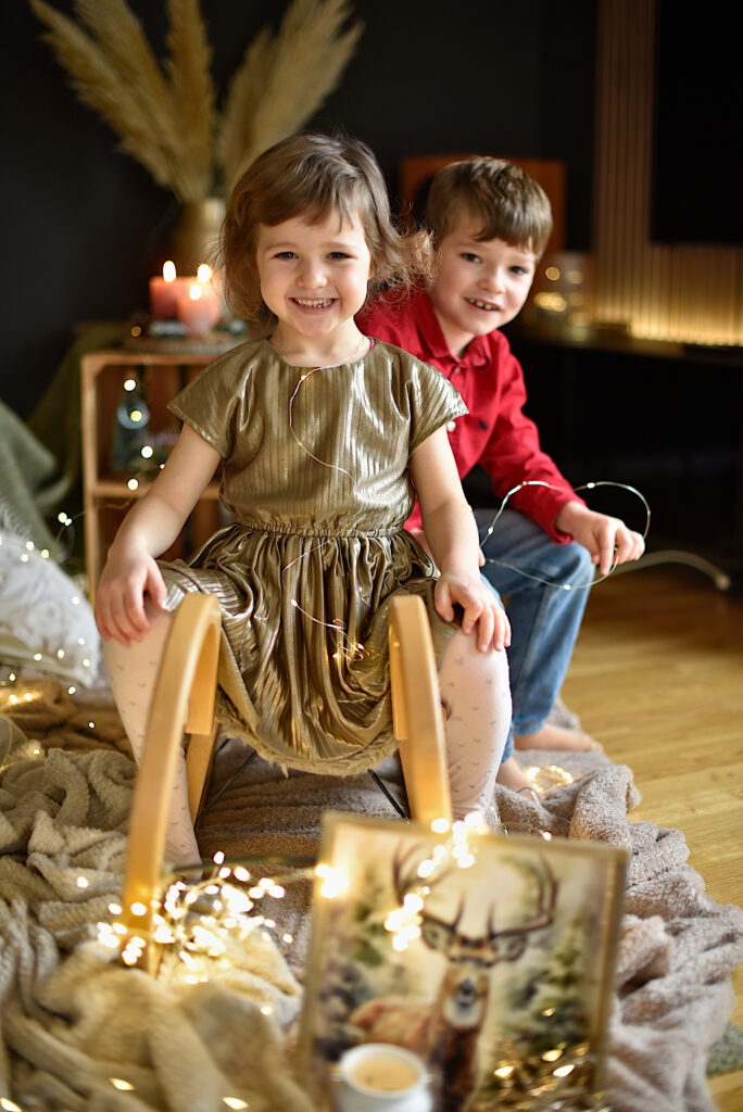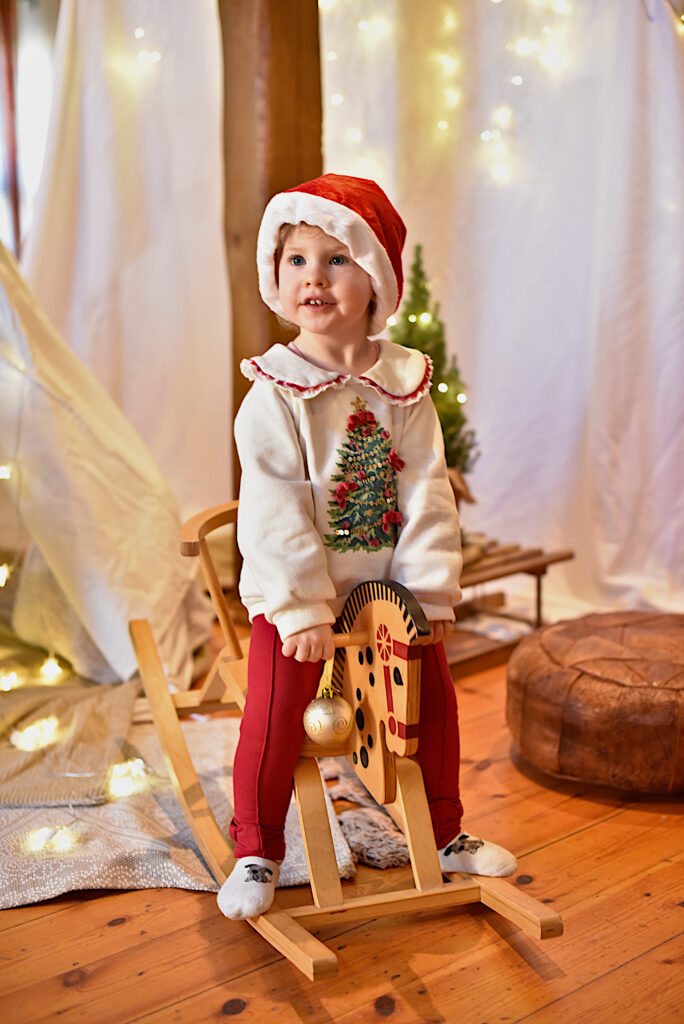 Für die Shootings habe ich drei verschiedene Sets aufgebaut und mit viel Liebe zum Detail selbst gestaltet. In der gemieteten Bürgerstube des Vereinshauses konnten so kleine Weihnachtswelten entstehen, die genügend Raum für echte Emotionen ließen: natürliche Farben, weihnachtliche Accessoires und ganz viele Lichter.
