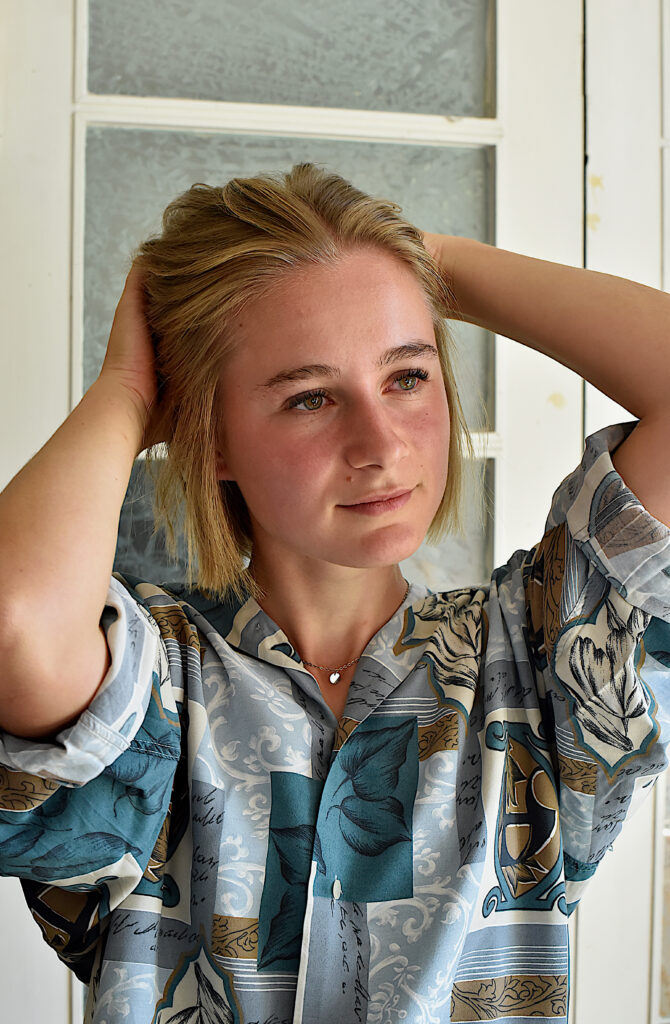 Ursprünglich hatte ich Thea ein paar Bildideen und Posen gezeigt – Inspiration, die ich mir für das Shooting vorgestellt hatte. Doch während wir arbeiteten, entwickelte sich dennoch etwas ganz Eigenes. Viele der Bilder sind ganz spontan entstanden: ruhig, klar, pur. Manche mit einem direkten, bewussten Blick in die Kamera, andere wiederum ganz ungestellt, natürlich – fast wie ein flüchtiger Moment. Am Ende ist eine Serie entstanden, die für mich genau das einfängt, was ich gesucht habe und worauf es mir bei Portraits ankommt: echte Ausstrahlung, ungekünstelte Schönheit und kleine Geschichten, die sich im Blick erzählen.